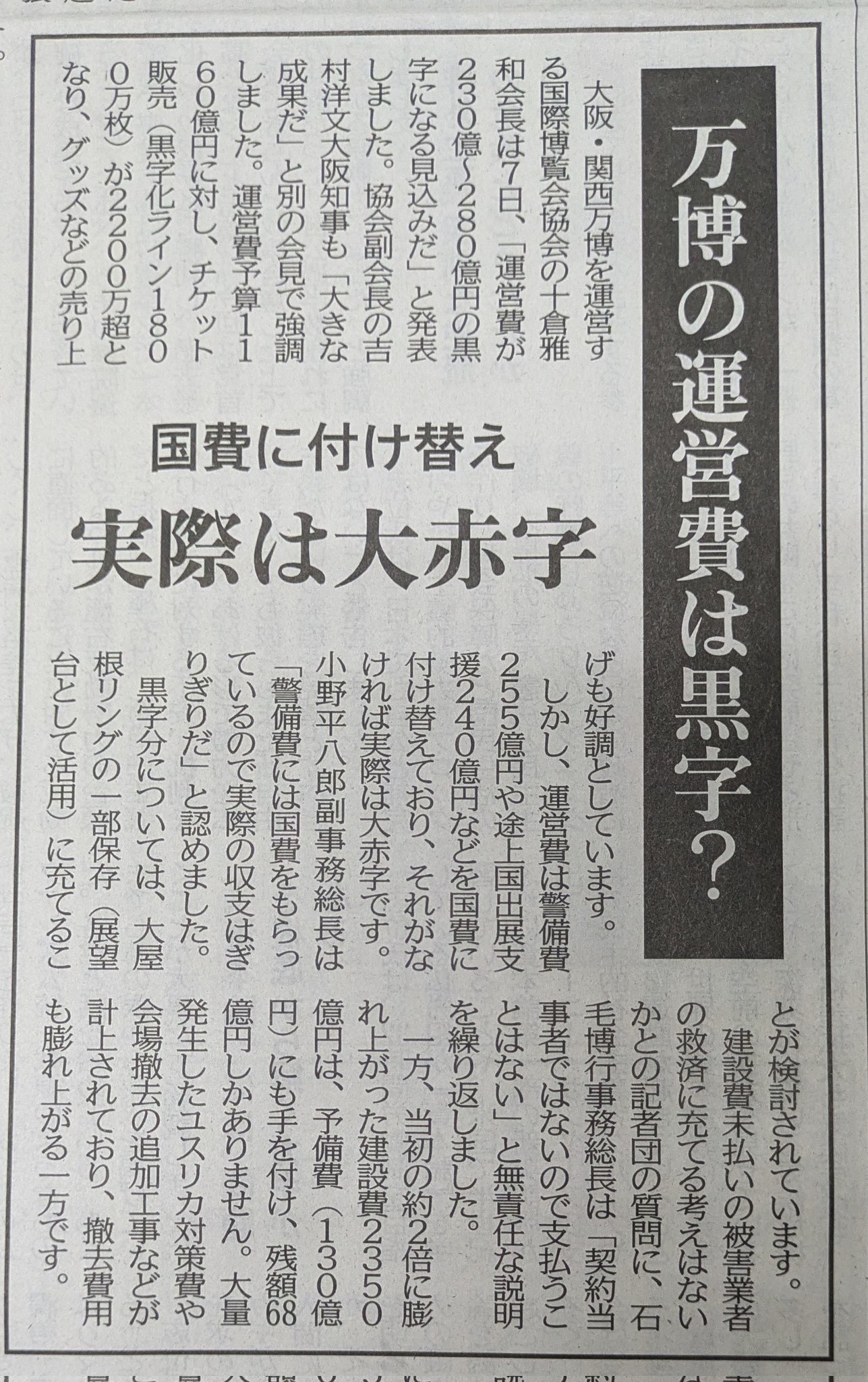 国費に付け替えって。。。そもそも万博は国家事業ですよ