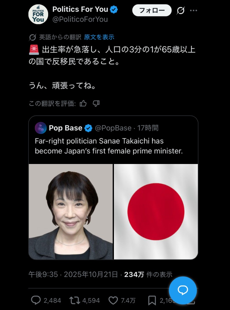 「人口減ってる高齢社会で反移民?まあ頑張ってね」