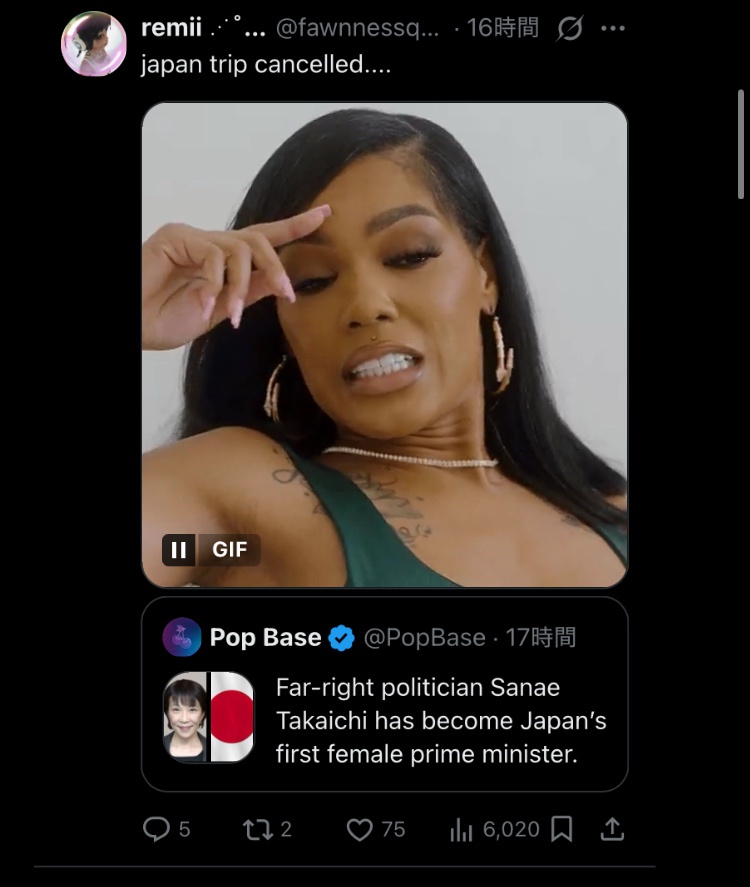ポップベース「極右の政治家・高市早苗が日本初の女性首相になりました」