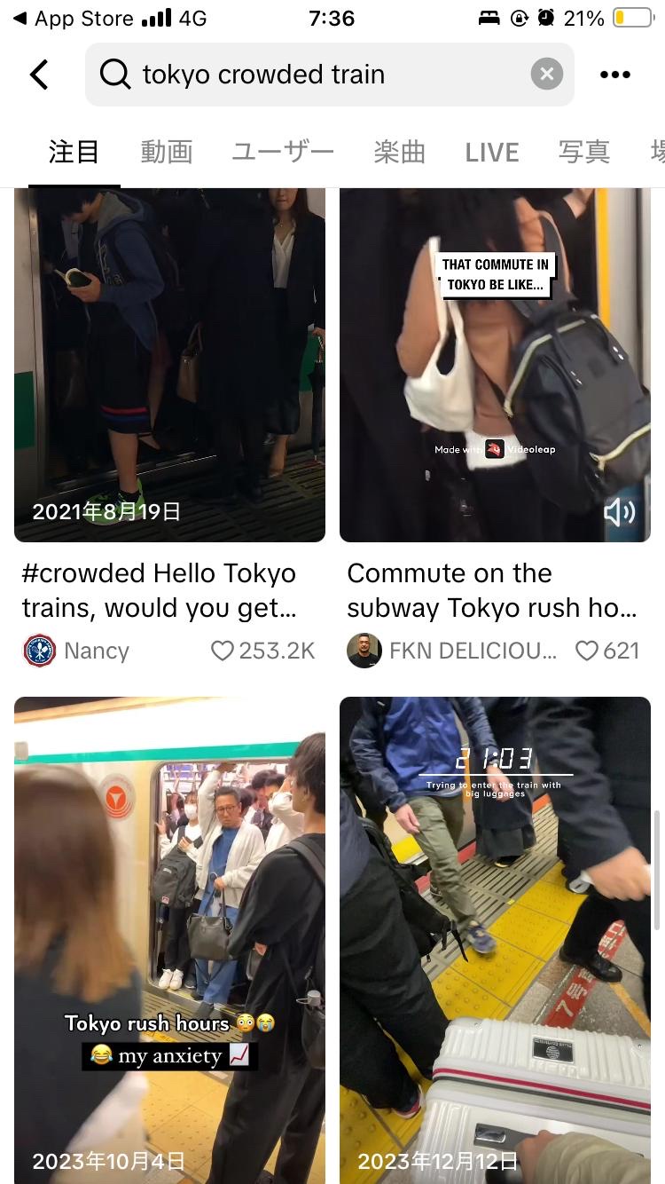 東京の満員電車が海外インスタTikTokで馬鹿にされ人気コンテンツになってるw