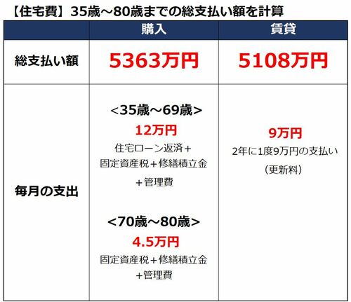 45年とか住み続けるわけないし賃貸の圧勝で草