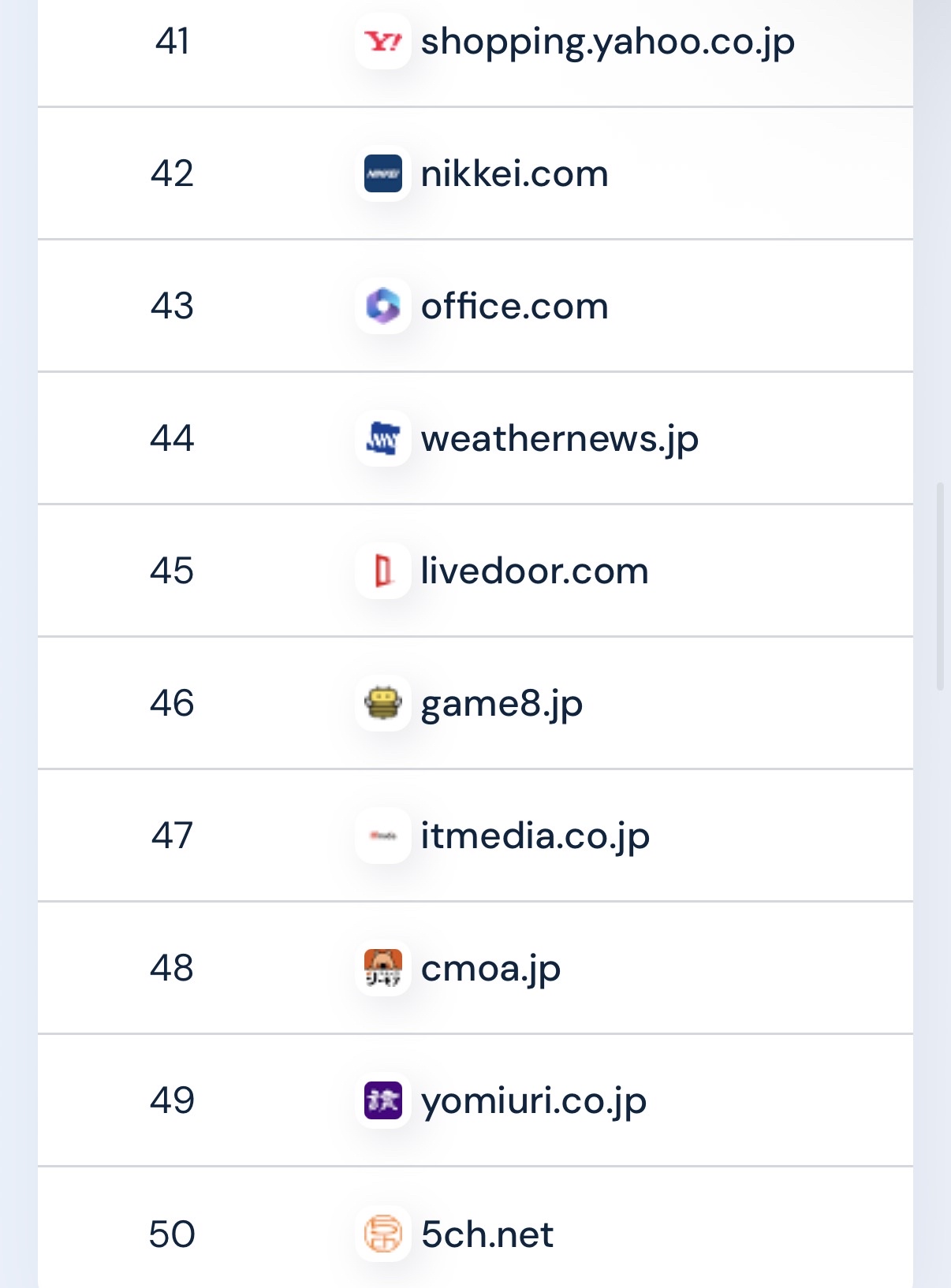 昔の2ちゃんは20位以内に入ってたんだけどな