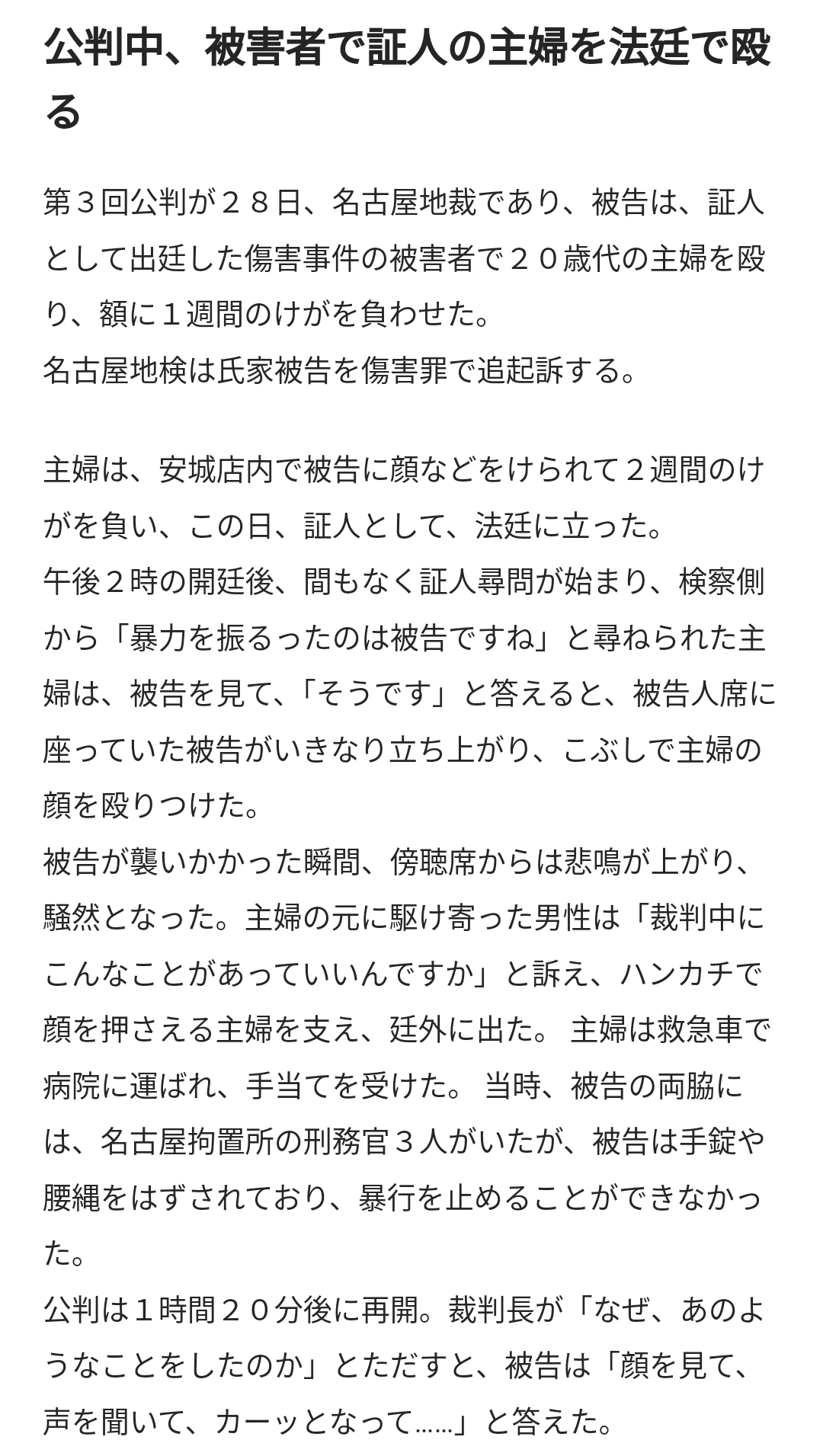 法廷で証人が被告に殴られる事なんてあってええんか