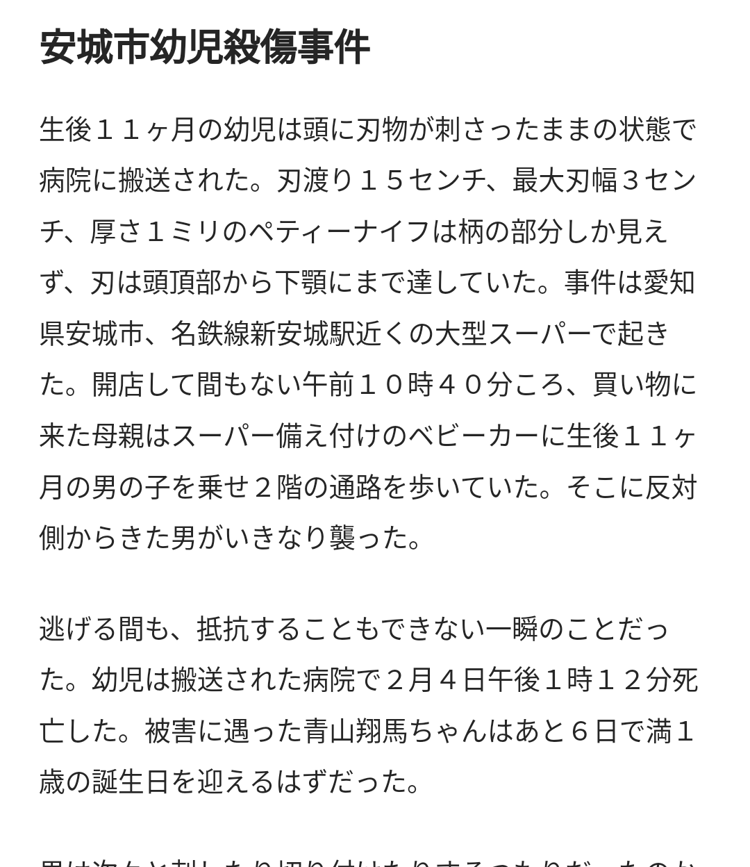 安城市幼児殺傷事件でググればすぐ出るで