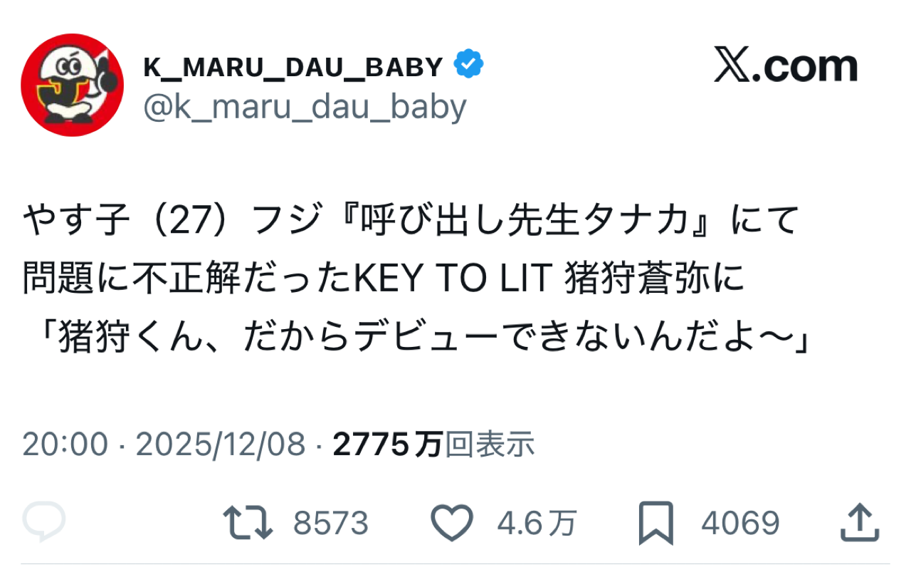 長年燻ってるジャニーズjrに向かって「だからデビューできないんだよ」と弄って大炎上