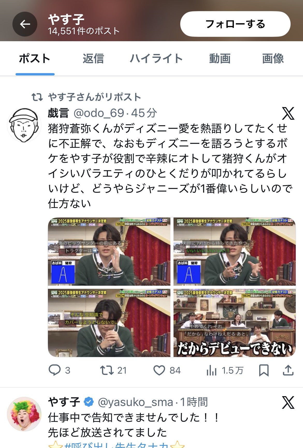 番組でいじるのはいいけどXの擁護をやす子本人がリポストするのはダサいわ