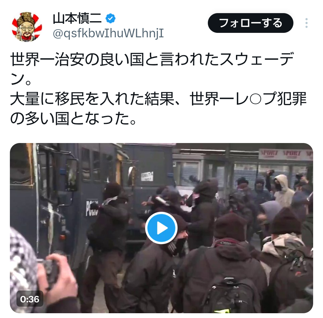 移民が犯罪しないような国にしなかったスウェーデンのせい