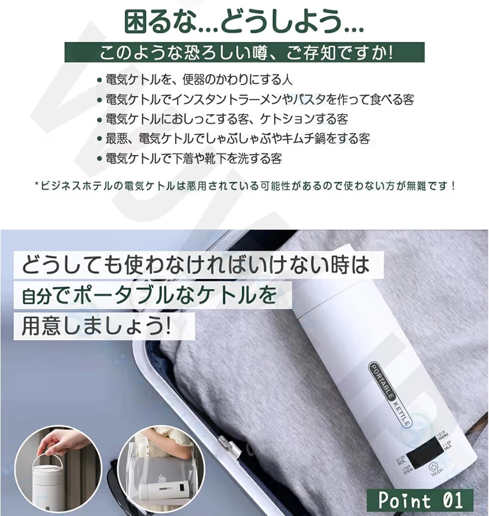 ケトルもスリッパも使えねえな