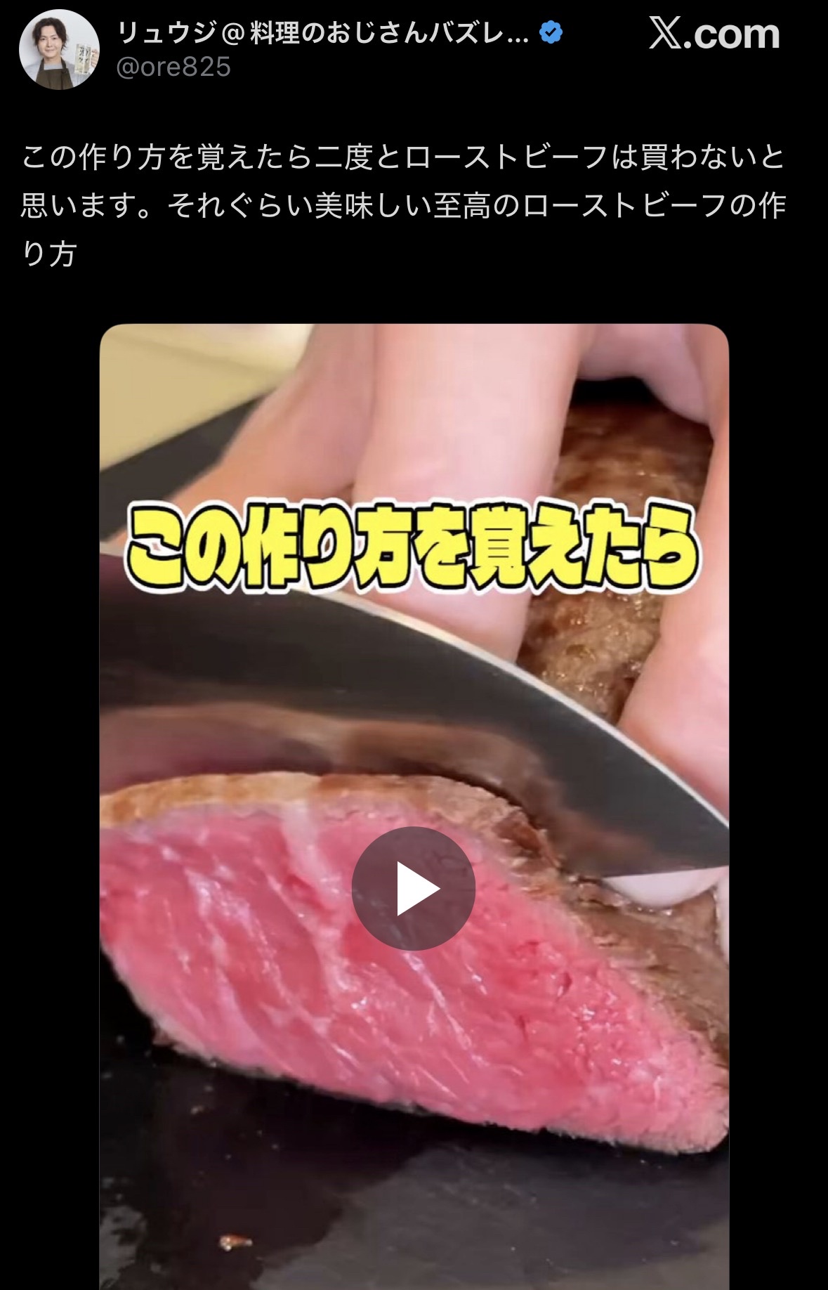 【悲報】料理研究家リュウジ、ローストビーフのレシピを披露してまた炎上してしまうwwwwwwwwww