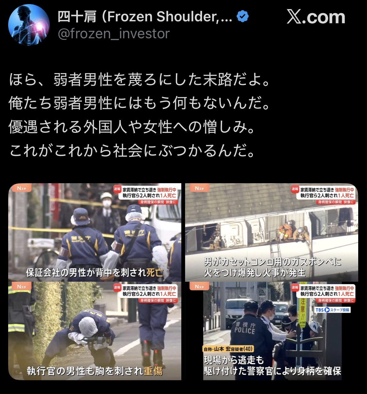 このポストの意味は「次はお前らがナイフの被害者だけどどうする?」に近い意図であり、「弱者男性だから助けて下さい」では無いぞ