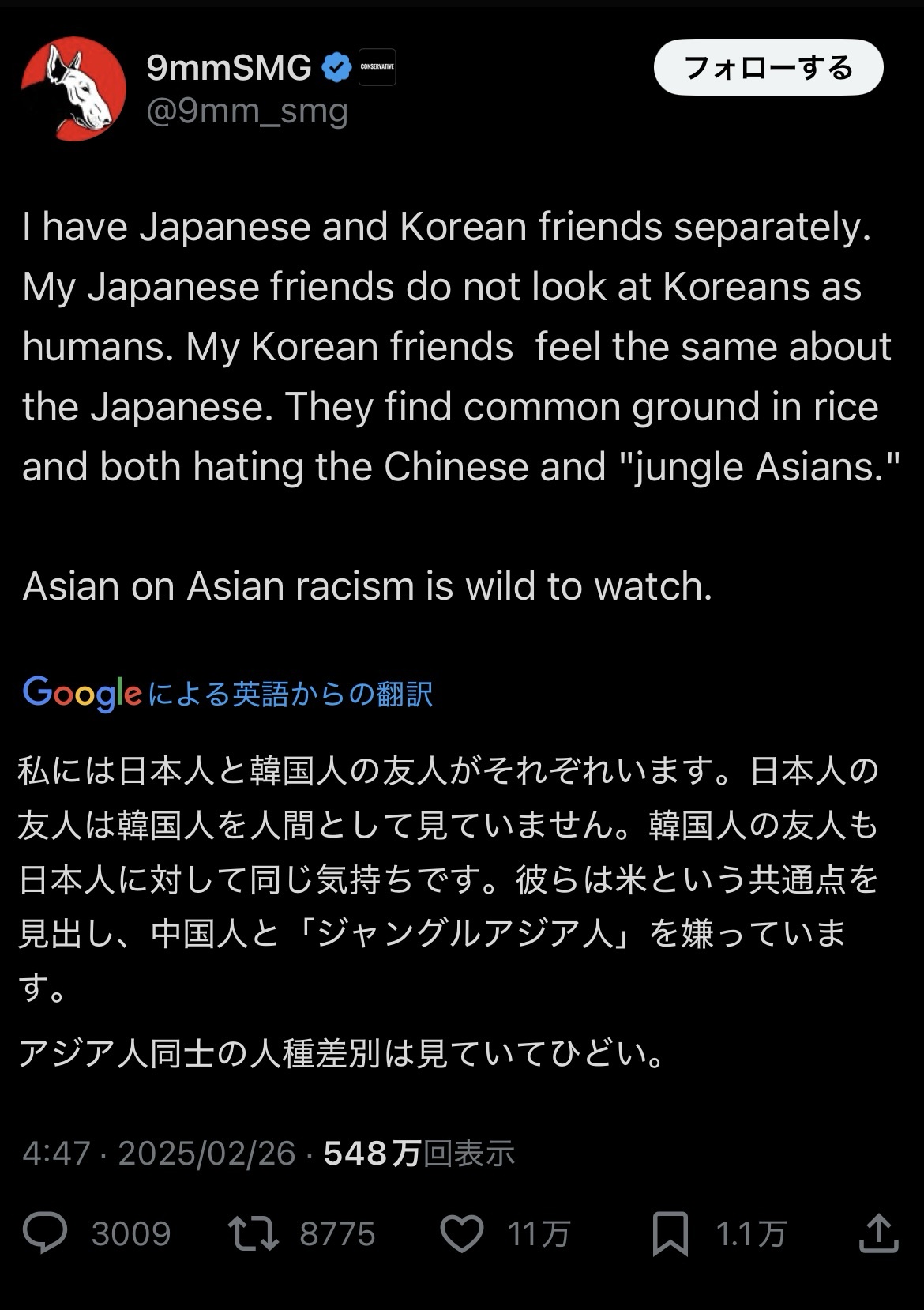 ジャングルアジア人てこいつ自身差別してんじゃん