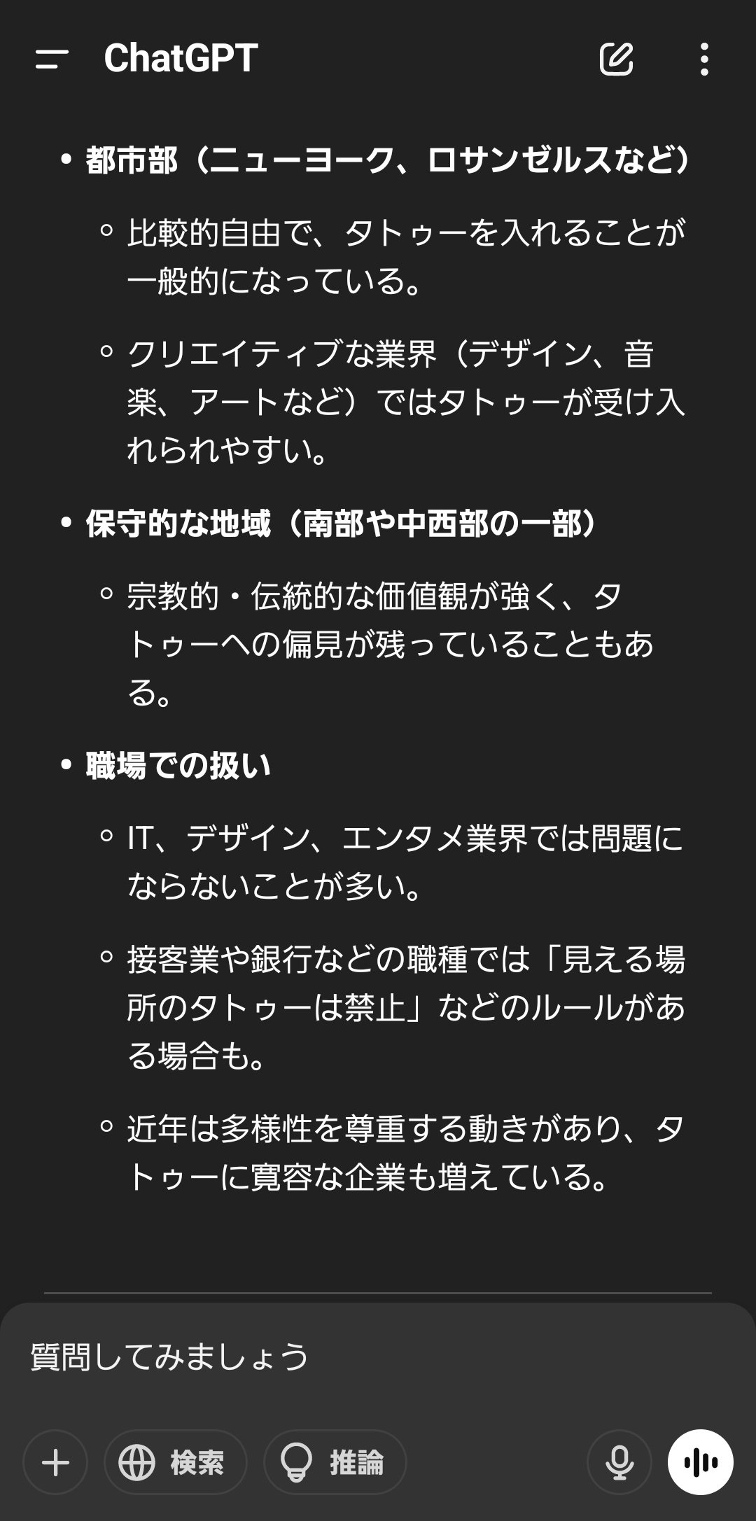 いくら海外はいうても実際ウォール街やシリコンバレーでタトゥー率調べたらかなり少ないんちゃうか?🤔