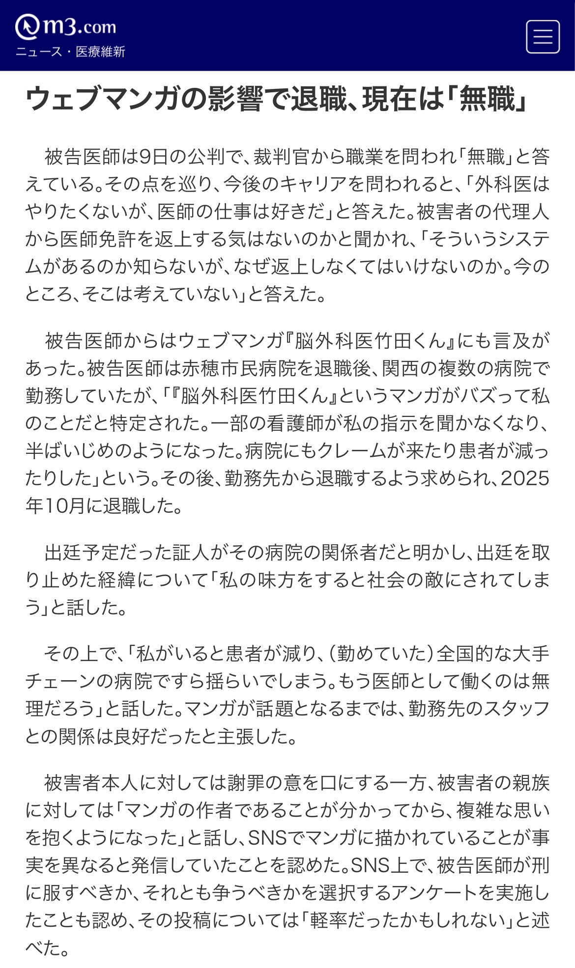 【悲報】脳外科医 竹田くん「漫画のせいで看護師が指示を聞かなくなった、漫画のせいで無職になった」←コレ結局具体的には何したんや????????