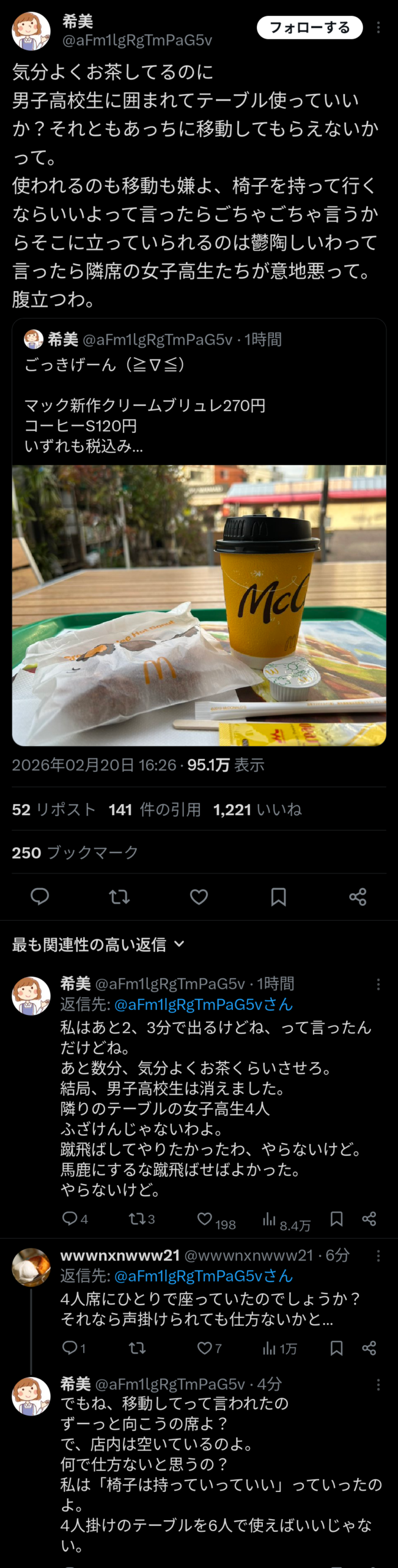 他に空いてるのに言ってくるのは面倒な高校生やなぁとは思う