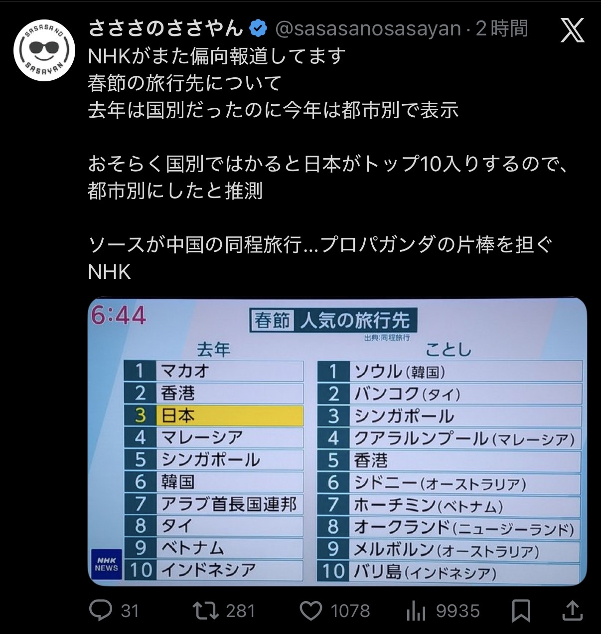 そしてここで問題なのは「観光業に大打撃を与えた現政権」という偏向報道