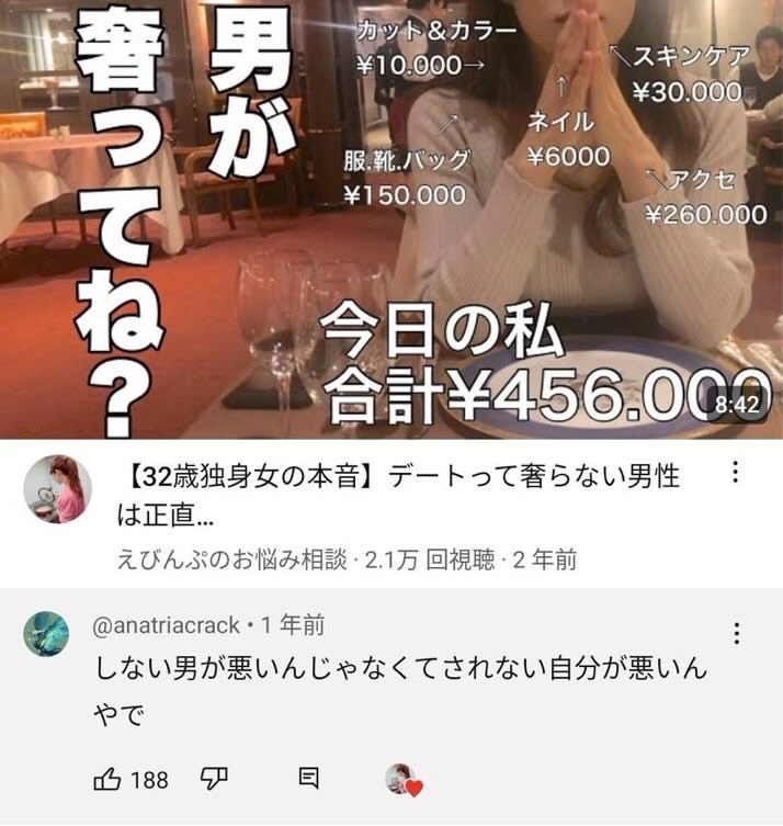 てか32歳の時点で割り勘言えんのはマイナス70点くらいあるやろ