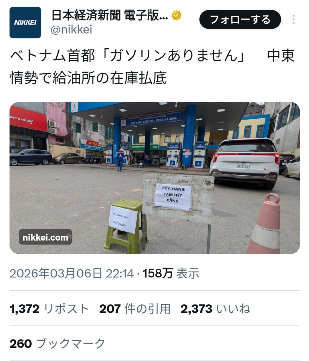 日本も備蓄分減らすわけにもいかず、結局備蓄放出分高値で買わざる得ないからあっという間にガソリンから電気からなにから値上げの嵐やで