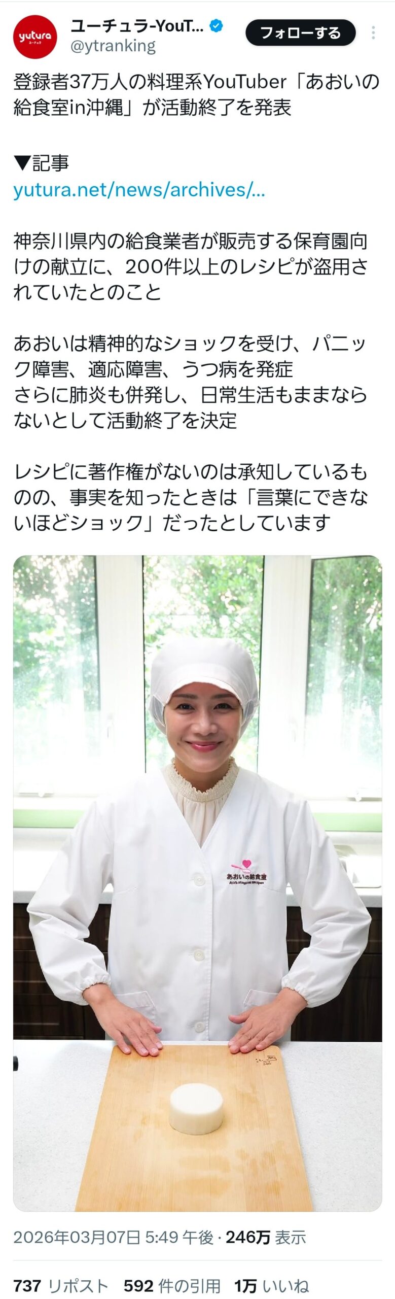 この人のチャンネル楽しみにしてたから残念😢