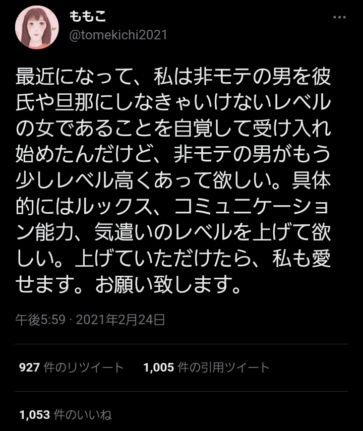 最近になって、私は非モテの男を彼氏や旦那にしなきゃいけないレベルの女であることを自覚して