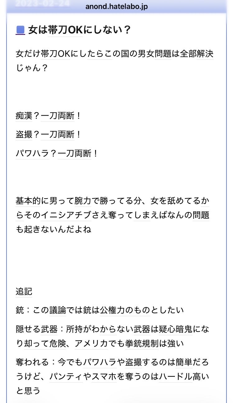 仮に女の刀剣での殺傷が無罪になってもあんま話は改善しなさそう