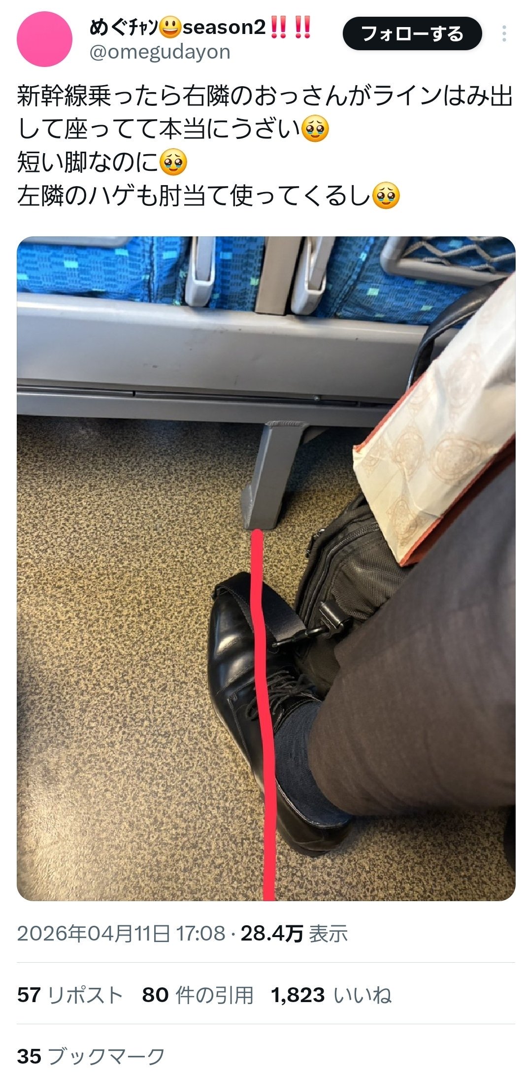 脚やら肘やらはみ出してくるオッサンの隣だと外れ
